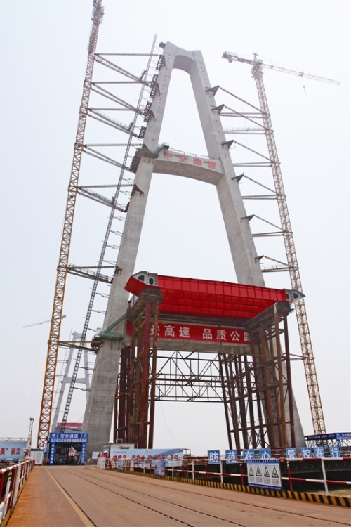 “由于A字型塔柱下宽上窄场地狭小,钢梁与塔壁间距仅30厘米,吊装作业空间大大受制,整个过程不能有丝毫疏忽,而且过往船只泛起的波浪,也给钢梁的精确定位带来很大的挑战。再加上涨落潮速度较快,允许吊梁时间往往只有一个小时,从而增加了吊装施工的难度。”该标段负责人说,为保证吊装施工顺利进行,大桥建设者不断优化钢梁吊装施工技术与安全方案,并事先对现场作业人员进行技术、安全方面的指导。7月24日凌晨5时起,施工人员整装待发,严格对照潮汐表安排吊装时间,并选择在白天的平潮期进行施工,以减少波浪的影响,最终花了一个小时,确保了该大桥第三榀钢梁的成功吊装。(记者 杜一川)
