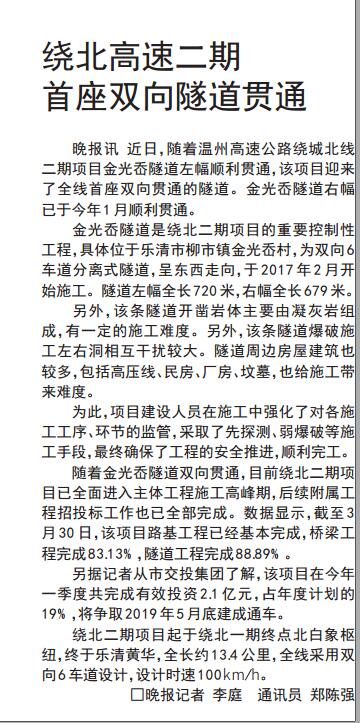 绕北二期明年5月底可通车