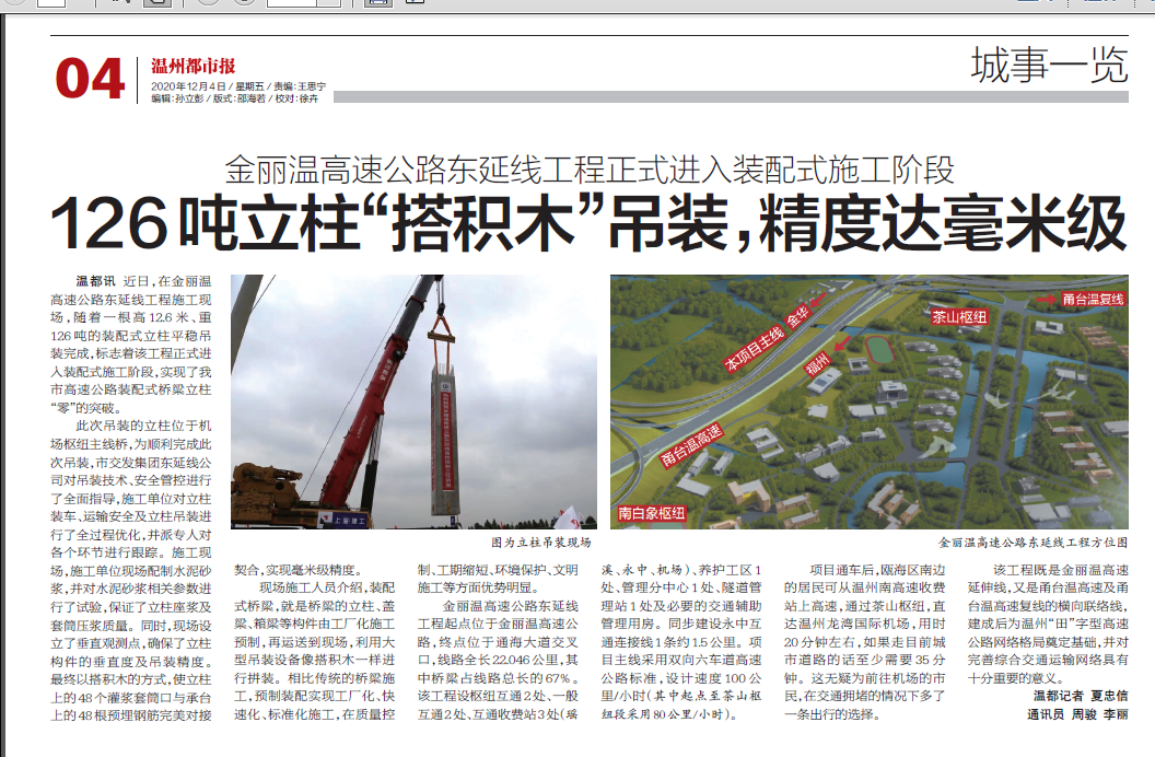 金丽温高速公路东延线工程正式进入装配式施工阶段