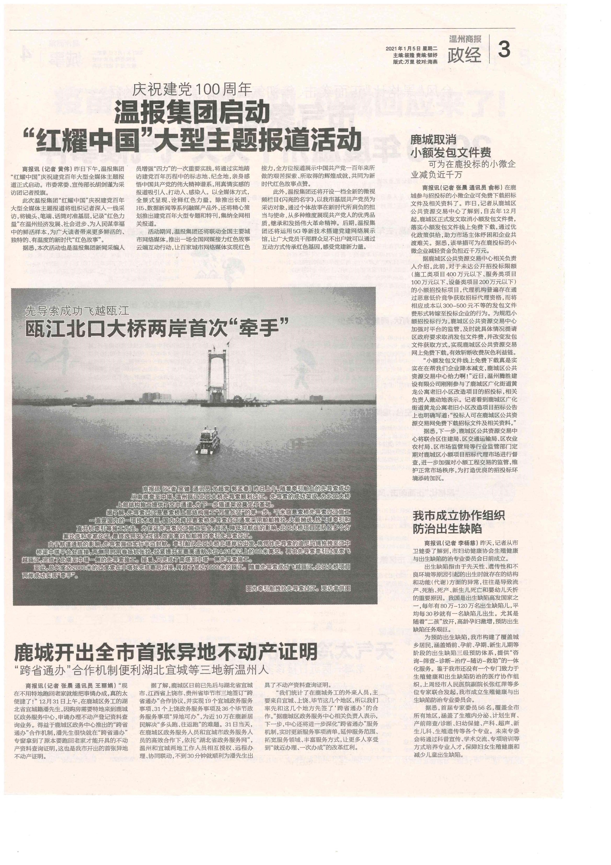 瓯江北口大桥两岸首次“牵手”