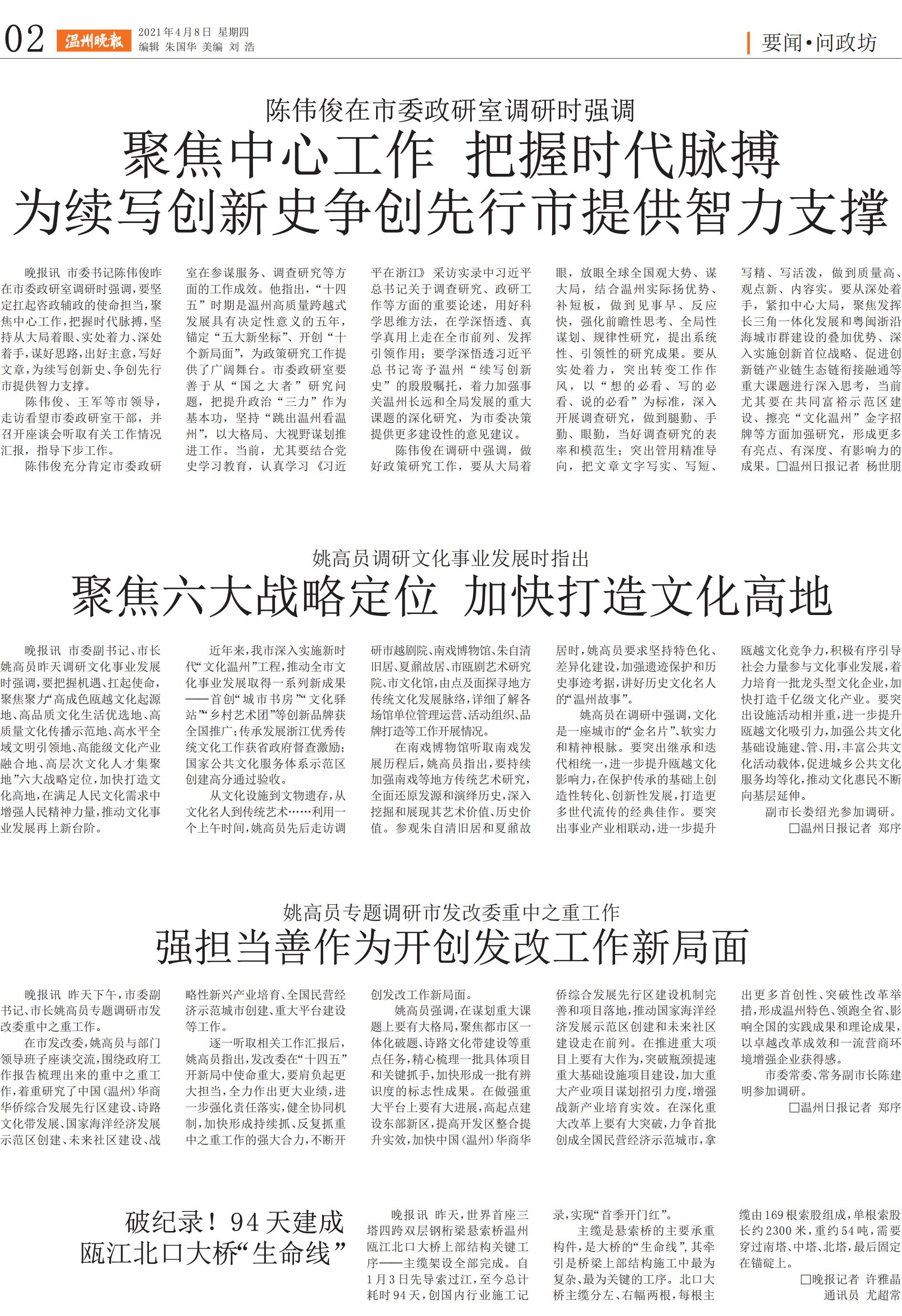 破纪录!94天建成瓯江北口大桥“生命线”