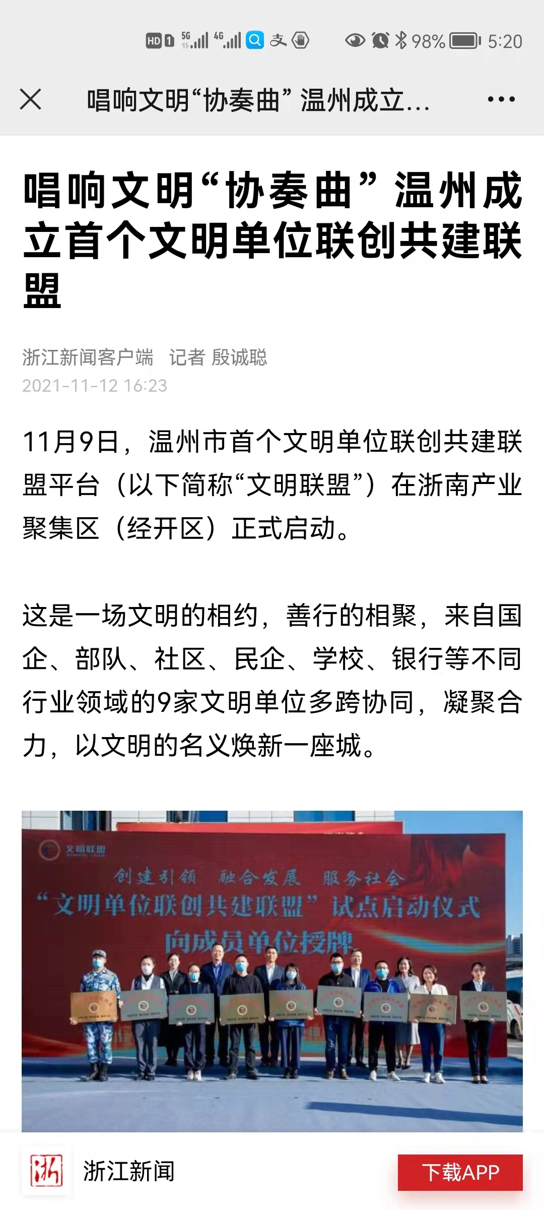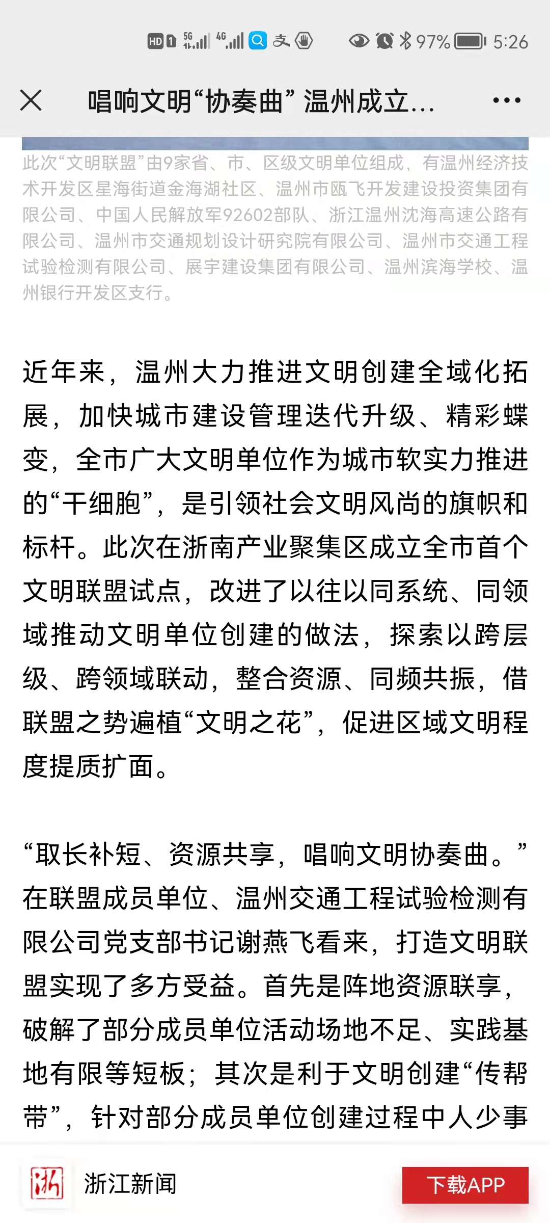 唱响文明“协奏曲” 温州成立首个文明单位联创共建联盟