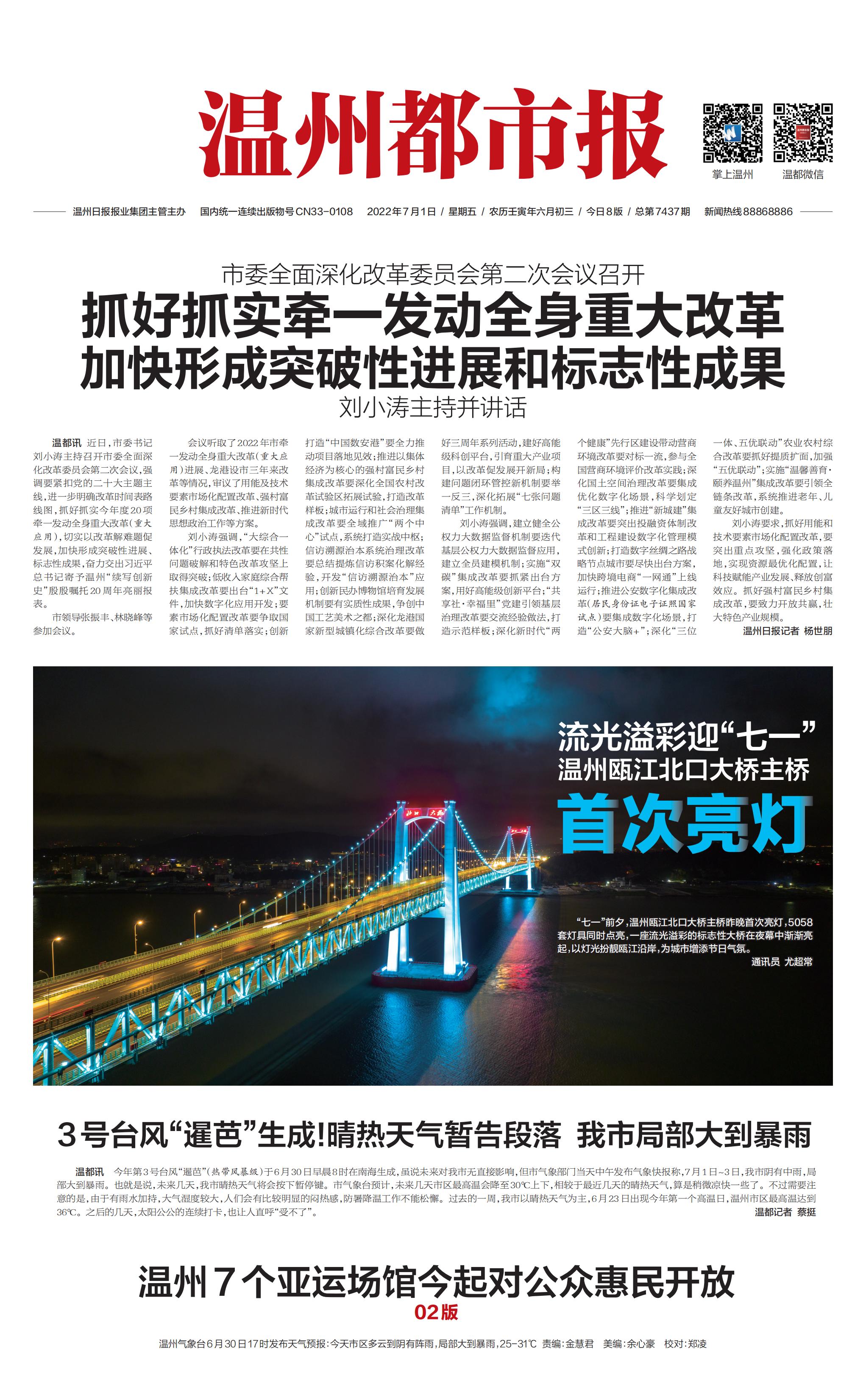 流光溢彩迎“七一”!温州瓯江北口大桥主桥首次亮灯