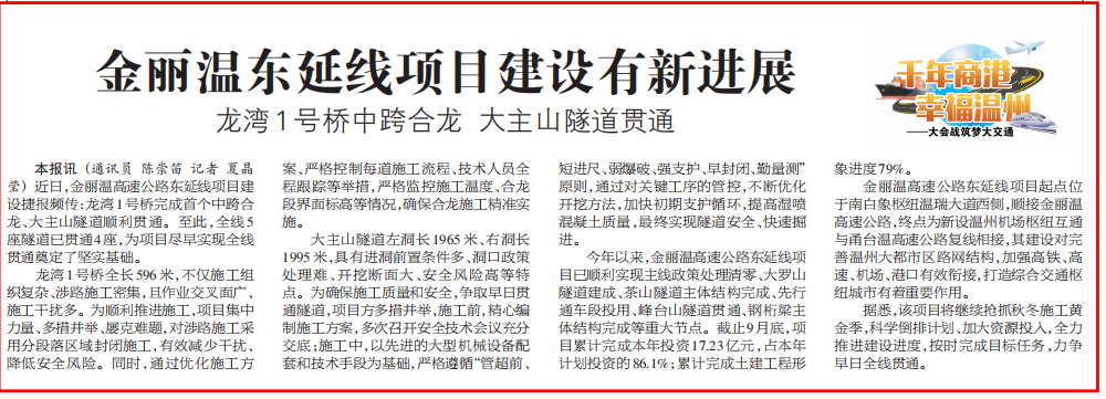 金丽温高速东延线项目:大干快赶抢抓施工黄金期