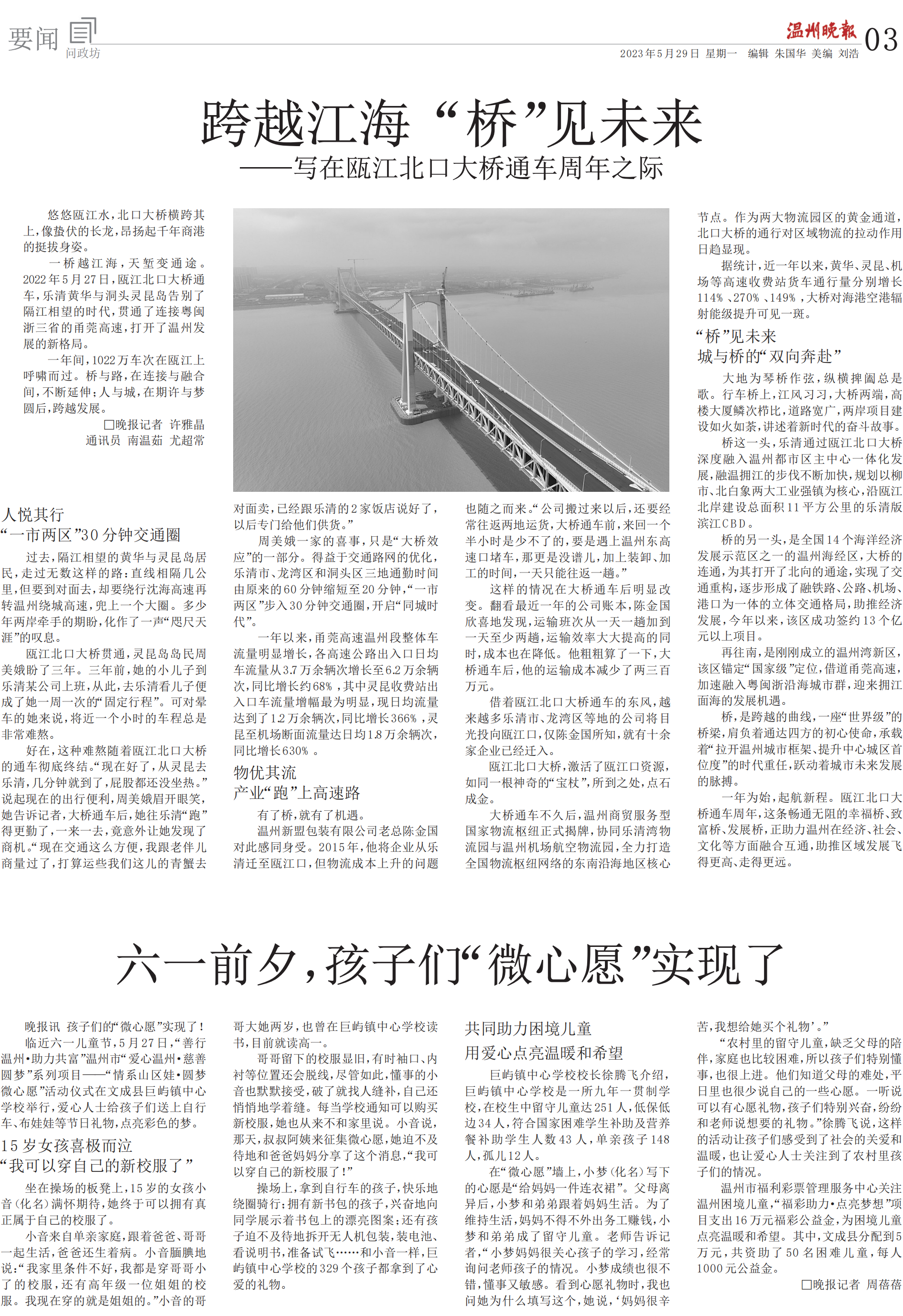 跨越江海“桥”见未来 写在瓯江北口大桥通车周年之际