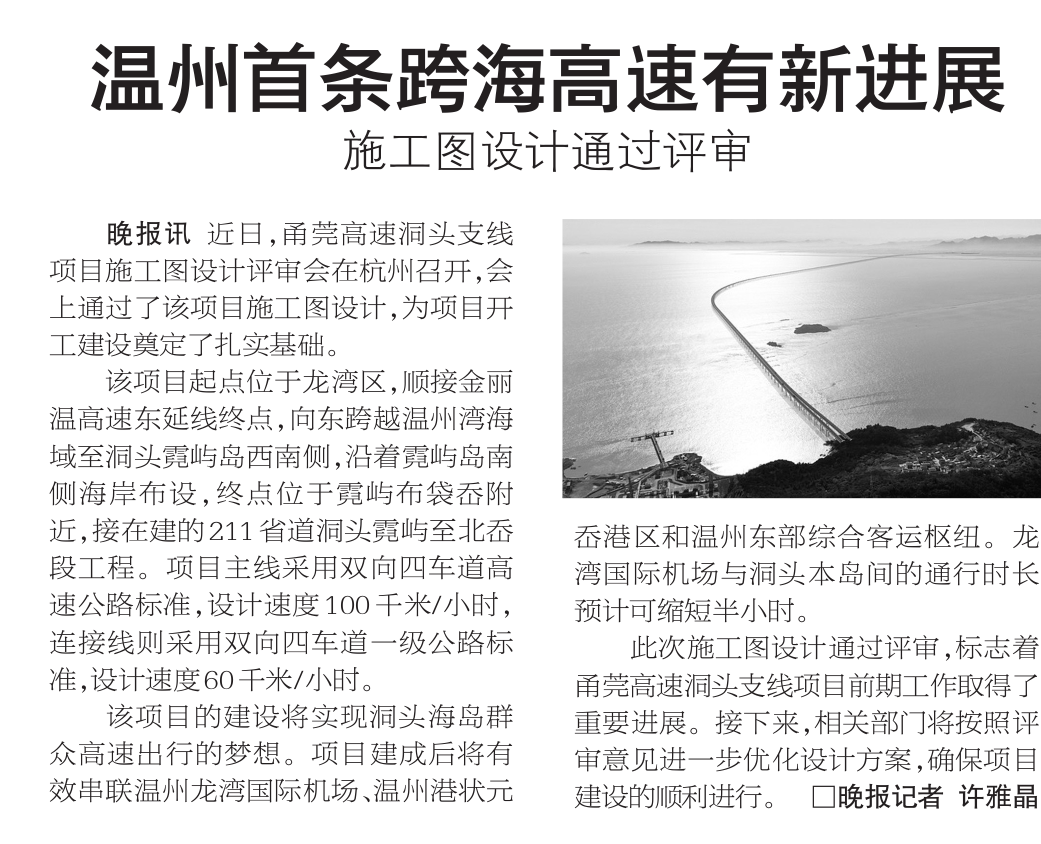 温州首条跨海高速有新进展施工图设计通过评审