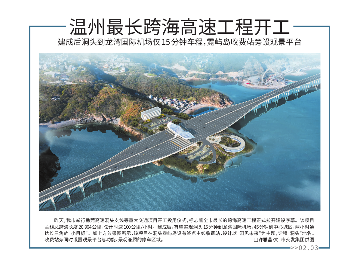 甬莞高速洞头支线等20个重大交通项目集中开工投用