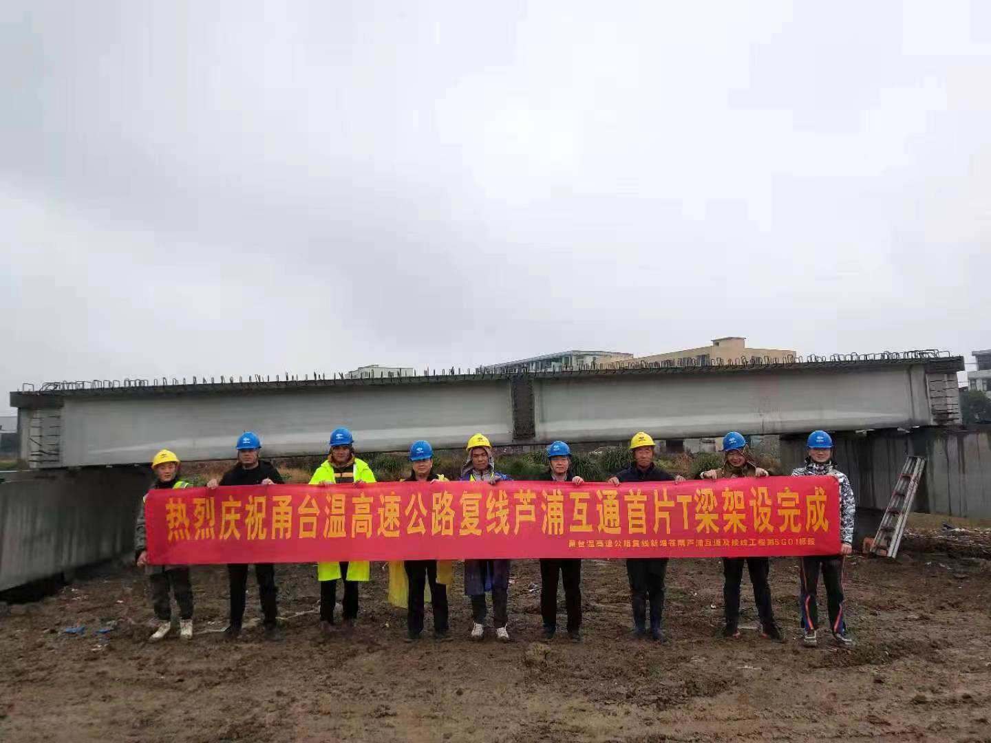 2月5日,甬台温复线芦浦互通工程首片预制T梁顺利吊装,标志着项目上部结构物施工进入了新阶段。