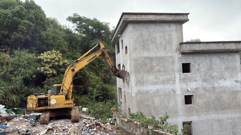 9月26日上午,在洞头区霓屿街道同兴村,伴随着挖掘机的轰鸣声,一栋房屋被顺利拆除,标志着甬莞高速洞头支线项目房屋拆除工作正式拉开序幕。