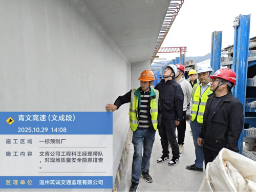 全面筑牢工程品质防线 青田至文成高速公路(文成段)开展10月份质量专项检查