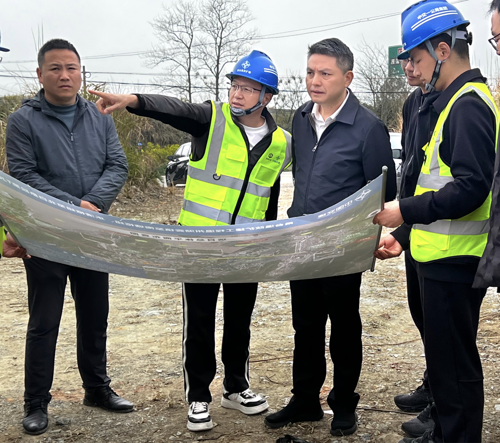 林益正一行深入项目现场,实地查看施工布局、详细了解项目总体施工计划,并听取项目临时用地、管线迁改、征拆工作等前期工作推进情况的汇报,全面掌握项目目前进展。