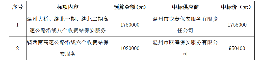 温州市365在线体育投注官网集团运营公司关于高速公路收费站点保安服务项目的采购结果公示