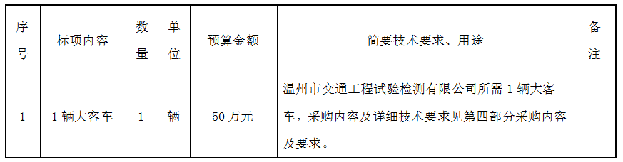 温州市365在线体育投注官网集团所属温州市交通工程试验检测有限公司关于1辆大客车(第二次)项目(自主)的采购公告