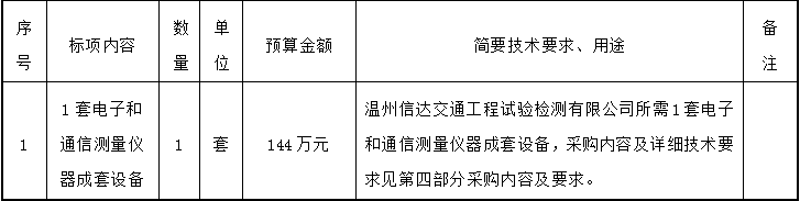 温州市365在线体育投注官网集团所属温州信达交通工程试验检测有限公司关于1套电子和通信测量仪器成套设备项目(自主)的采购公告