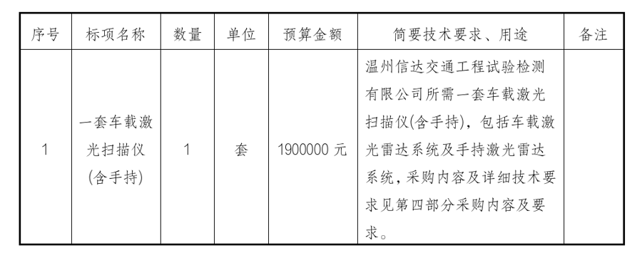 温州市365在线体育投注官网集团所属温州信达交通工程试验检测有限公司关于1套车载激光扫描仪(含手持)项目(自主)的采购公告