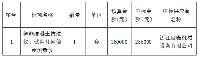 智能混凝土抗渗仪、试件几何偏差测量仪项目(自主)的采购结果公示