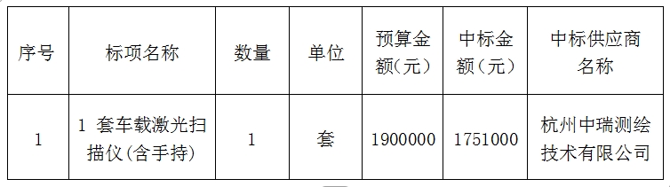 激光扫描仪(含手持)项目(自主)的采购结果公示