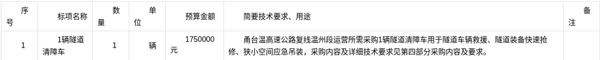 关于1辆隧道清障车(自主)的采购公告