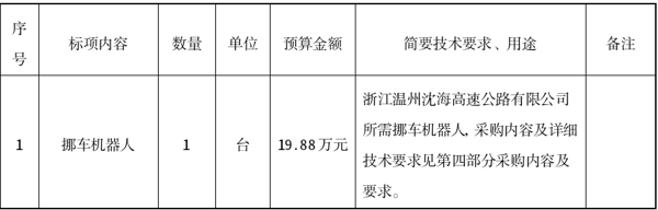 温州市365在线体育投注官网集团所属浙江温州沈海高速公路有限公司关于挪车机器人(第二次)项目(自主)的采购公告