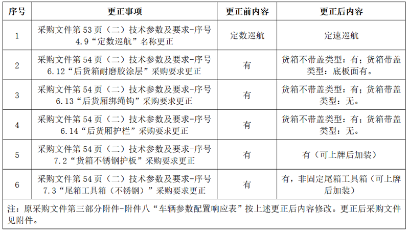 关于48辆皮卡车项目的更正公告