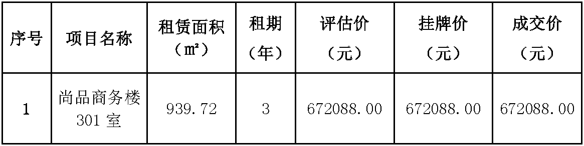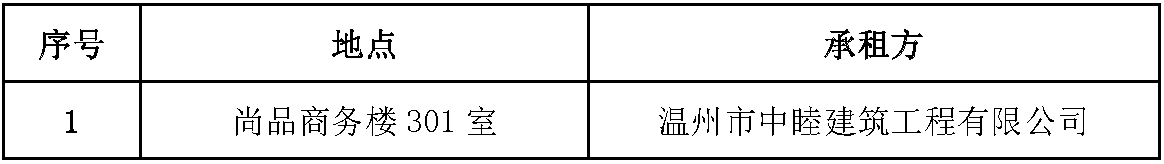 温州市集团有限公司下属温州房地产开发股份有限公司就所属尚品商务楼301室资产项目于2021年3月23日发布招租公告,现将招租结果公示如下: