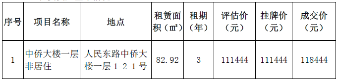 温州市集团有限公司下属温州房地产开发股份有限公司就所属东信大楼、中侨大楼等多处资产项目于2021年9月6日发布招租公告,现将招租结果公示如下: