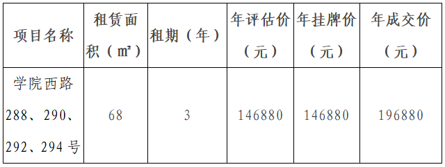 市365在线体育投注官网集团关于学院西路288、290、292、294号资产出租结果公示