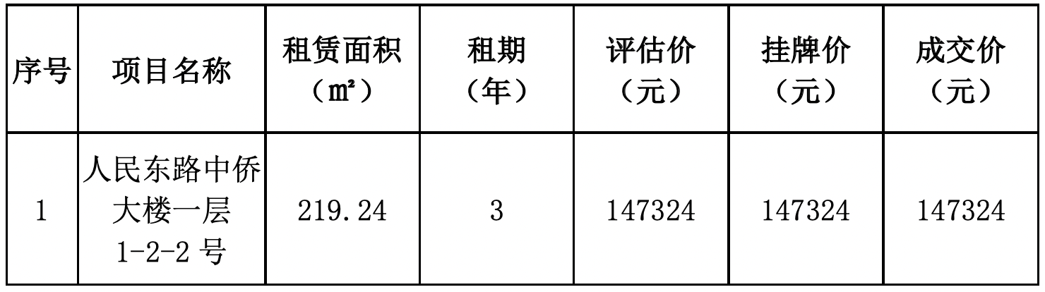 温州市集团有限公司下属温州房地产开发股份有限公司就所属鹿城区人民东路中侨大楼一层1-2-2号资产项目于2022年2月15日发布招租公告,现将招租结果公示如下: