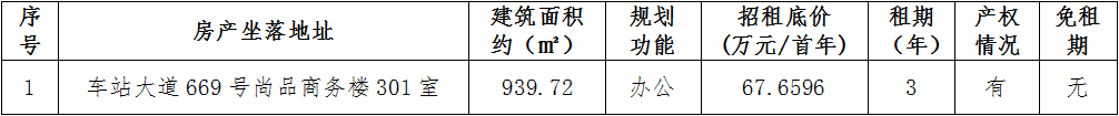 市365在线体育投注官网集团温州房地产开发股份有限公司温州市鹿城区车站大道669号尚品商务楼301室办公用房三年租赁权(第三次)交易公告