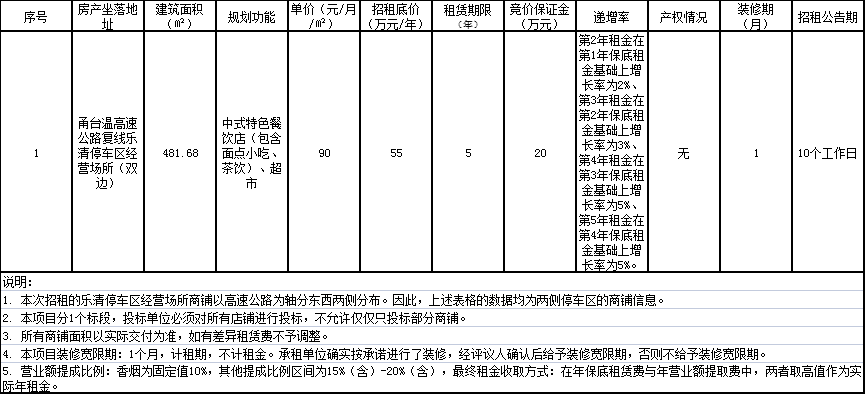 温州市365在线体育投注官网集团经营公司关于甬台温高速公路复线乐清停车区经营场所商铺五年租赁权交易公告