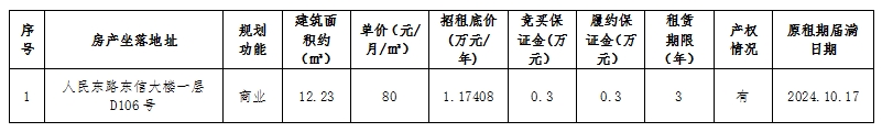 市365在线体育投注官网集团温州房地产开发股份有限公司关于温州市鹿城区人民东路东信大楼一层D106号房产租赁权交易公告
