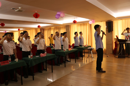参观完成后,全体党员在会议中心继续开展活动,党员们重温了入党誓词,并佩戴党徽。