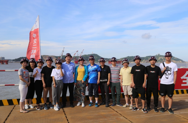 参观完女子民兵纪念馆之后大家来到了北口大桥灵昆岛施工现场,现场了解和感受北口大桥施工进展情况。