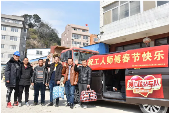 2018年春节临近,工人们也陆陆续续准备回家和家人团聚。为了让工人师傅们顺利回家,北口大桥土建二标志愿服务队对工人们进行走访慰问,给大家培训购票流程,帮助他们买票,组建“爱心送站服务队”,温暖了工人师傅们回家的路。