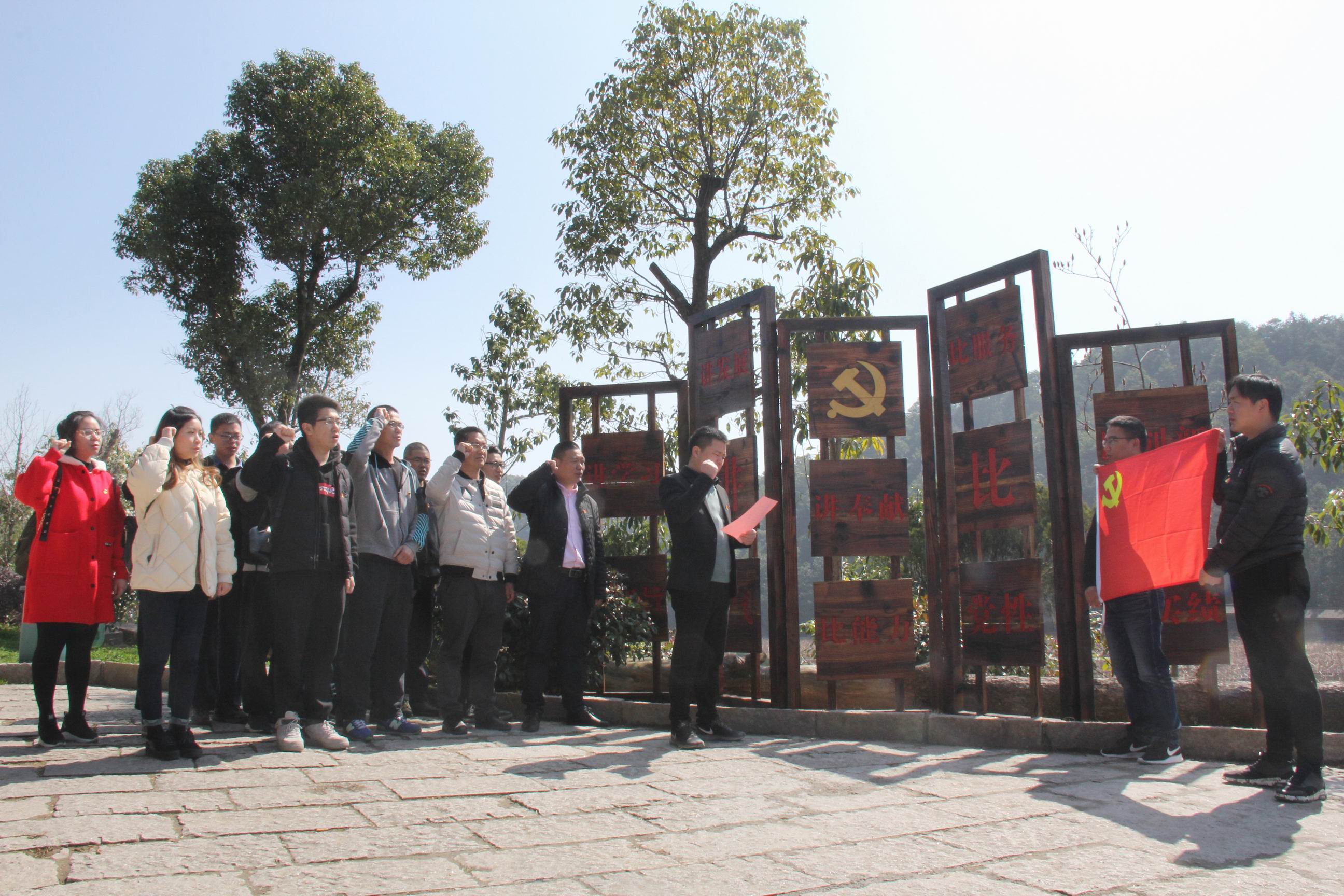 全体党员参观了温州市干部教育培训现场教学示范基地,学习当地党建支部主题党日开放式教育的活动成果,并在蔡书记带领下重温了入党誓言。