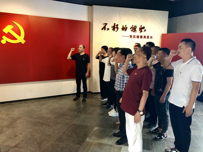 最后,一行人还参观了周恩来祖居及纪念馆(首批省级廉政文化教育基地),进行了党风廉政教育。党员们认真倾听了周恩来生平事迹讲解,观看了馆内丰富的陈列内容,直观了解了周恩来与故乡绍兴的密切关系和各个时期工作生活的场景,被周总理“勤政廉洁、严于律己、艰苦朴素、任劳任怨”的作风和“国家为重、人民为先、无私奉献、忘我工作”的精神深深震撼和感动。随后,全体党员在党旗前重温入党誓词。