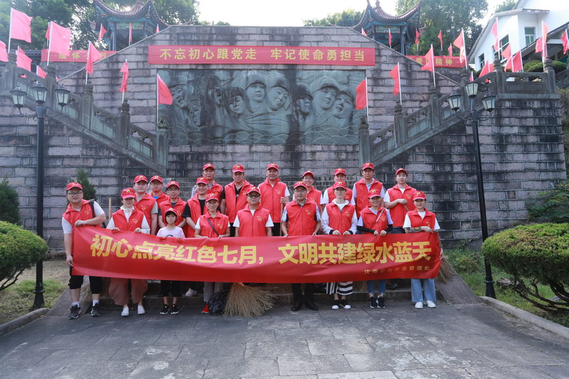 7月25日,公司平苍管理处组织开展“初心点亮红色七月,文明共建绿水蓝天”主题公益环保活动。志愿者们前往苍南革命烈士陵园门前集合,穿上统一的志愿服务红马甲。大家分工合作,手持夹钳、扫把、垃圾袋等工具,沿着小路对散落在陵园内、山路上、花丛里的生活垃圾、枯草落叶进行清扫。经过近1个小时的辛勤劳动,共清理出垃圾10袋,整个陵园环境焕然一新。