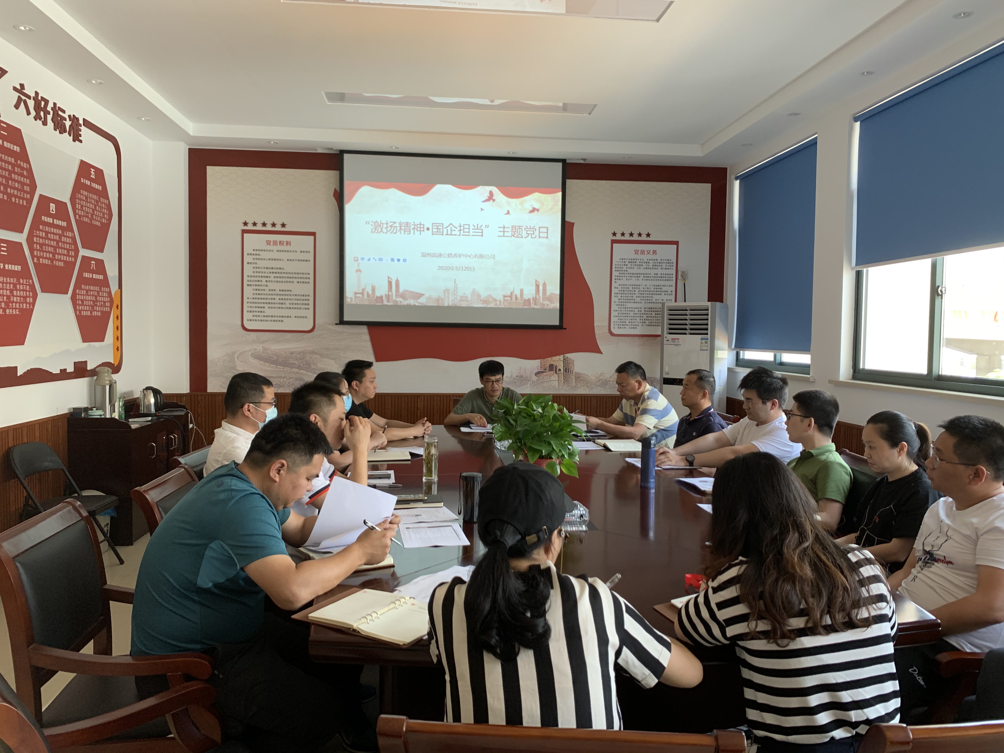 5月20日下午,在养护中心二楼会议室召开“激扬精神·国企担当”主题党日,会议由书记胡永杰主持,全体党员、中层及以上人员参加。