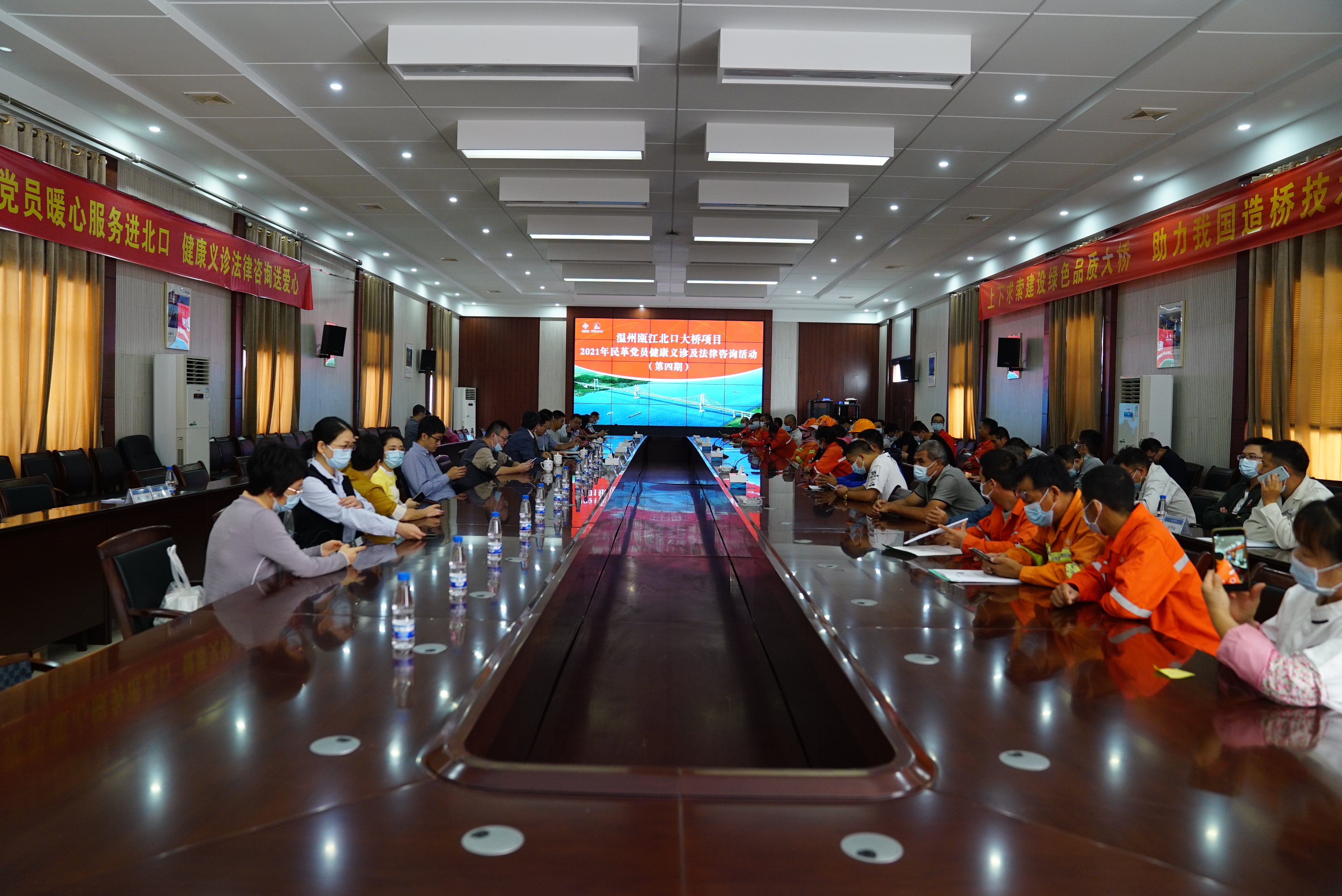 10月17日上午,“服务工程一线工人,助力国家级重点桥梁建设--民革党员健康义诊及法律咨询活动”走进温州瓯江北口大桥项目,这也是该项活动第四次在民革社会服务点——北口大桥举办。温州市政协副主席、民革温州委员会主委诸葛启钏带领16名从事医疗、法律专业的民革党员来到施工一线,为100余位工程建设者进行现场义诊及法律咨询服务。温州365在线体育投注官网集团总经理南品仁,瓯江口大桥公司总经理潘济等相关人员出席活动。