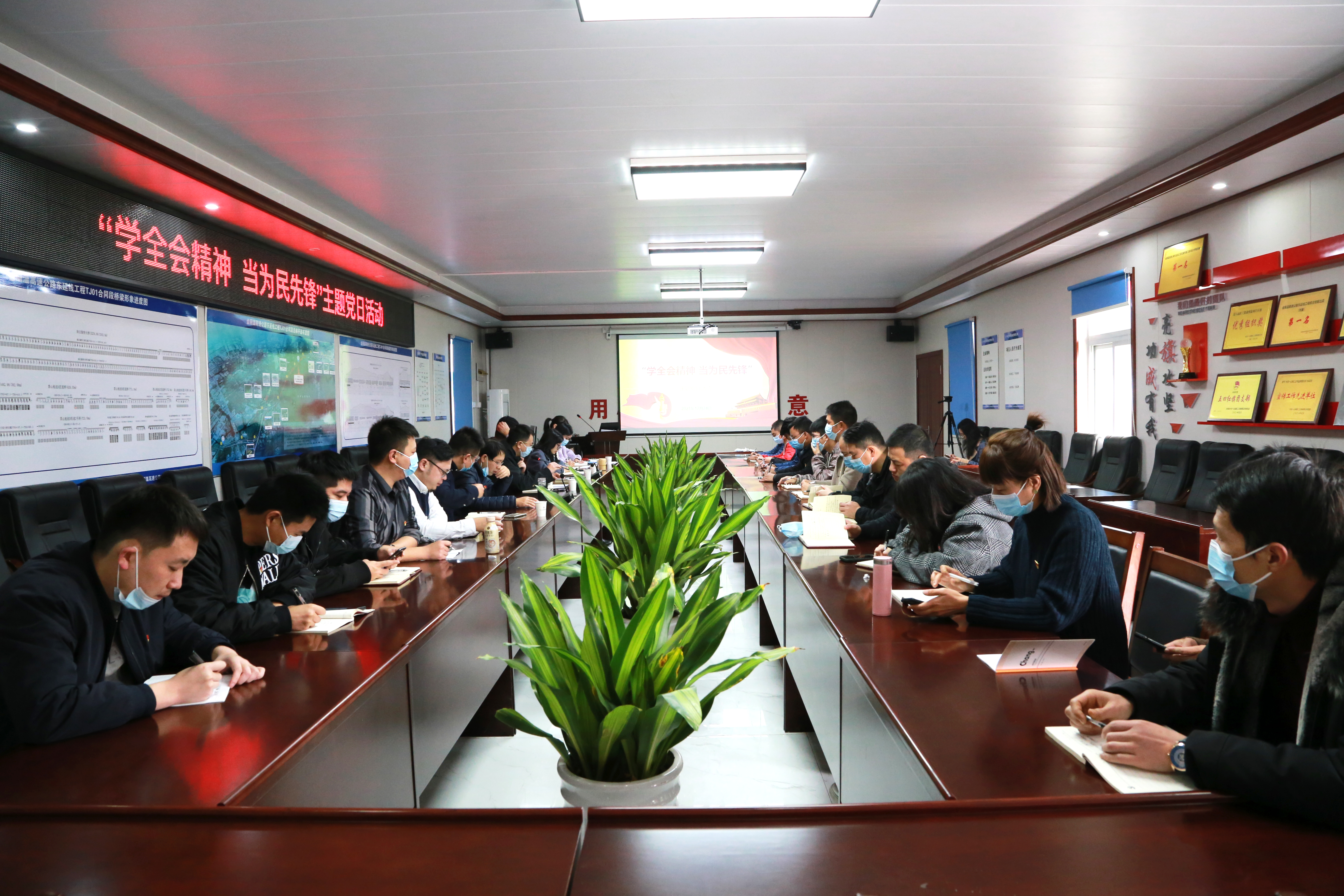 为推动党的十九届六中全会精神走深走实,全面深化习近平总书记关于“两个分量有多重”的重要批示精神,牢固树立党员服务群众意识,12月24日,高投东延线公司联合党支部在东延线工程1标项目部开展“学全会精神 当为民先锋”主题党日活动。