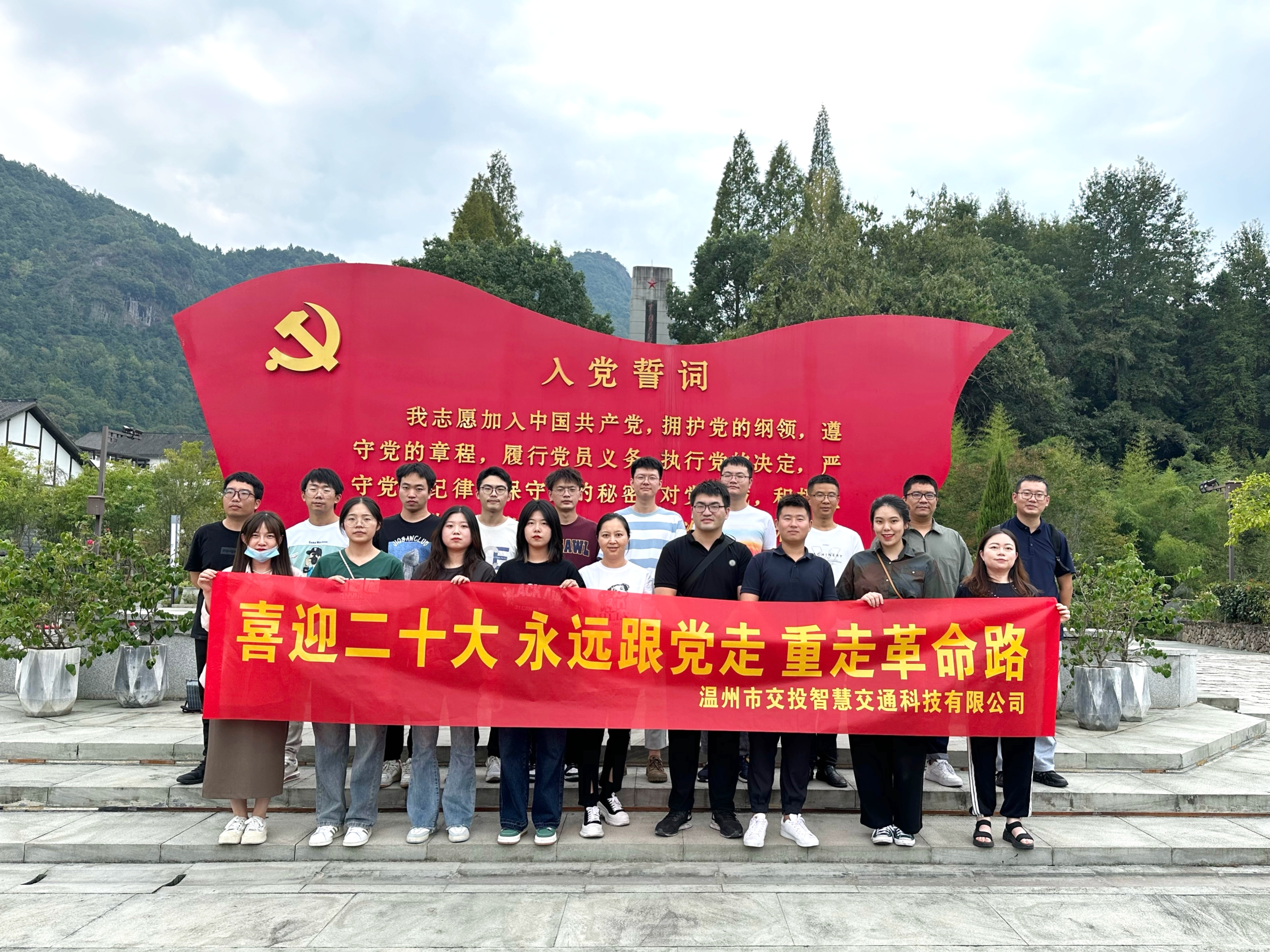 为迎接党的二十大胜利召开,进一步加强思想教育建设,弘扬革命精神和爱国主义精神,团结引领公司员工坚定跟党走、建功新时代的理想信念。2022年9月23日下午,温州市交投智慧交通科技有限公司组织全体员工前往永嘉县红十三军教育基地开展红色团建活动,重温红色历史,缅怀革命先烈,传承红色基因。