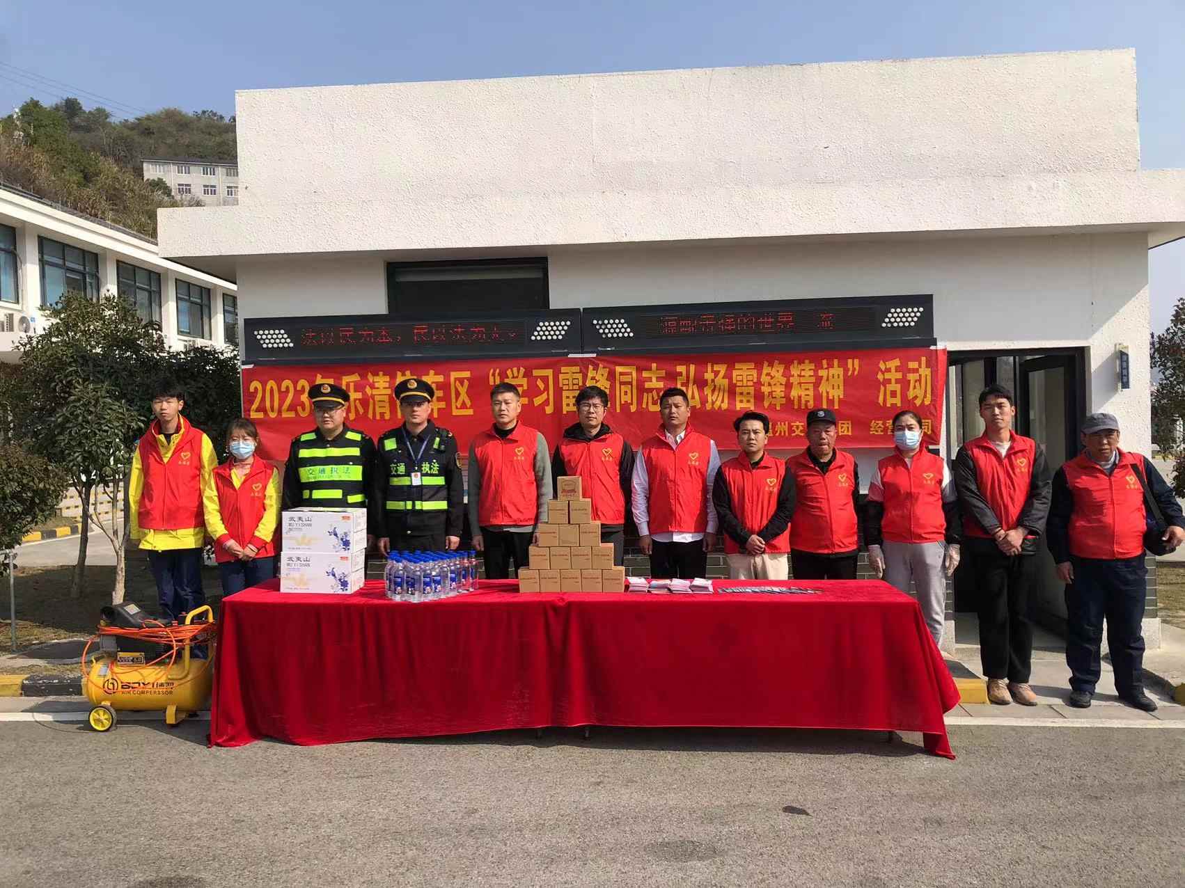同日,乐清停车区联合高速执法队,区内物业、商家、加油站工作人员开展“学习雷锋同志 弘扬雷锋精神”主题系列活动。志愿者身穿红马甲,准备简易修车工具,为区内有需要的车辆免费检查车辆。热情接待旅客,并发放安全折页,及小礼品。让旅客们在停车区内得到更好的服务体验,感到停车区真诚的关怀。展示了公司及乐清停车区的良好形象。