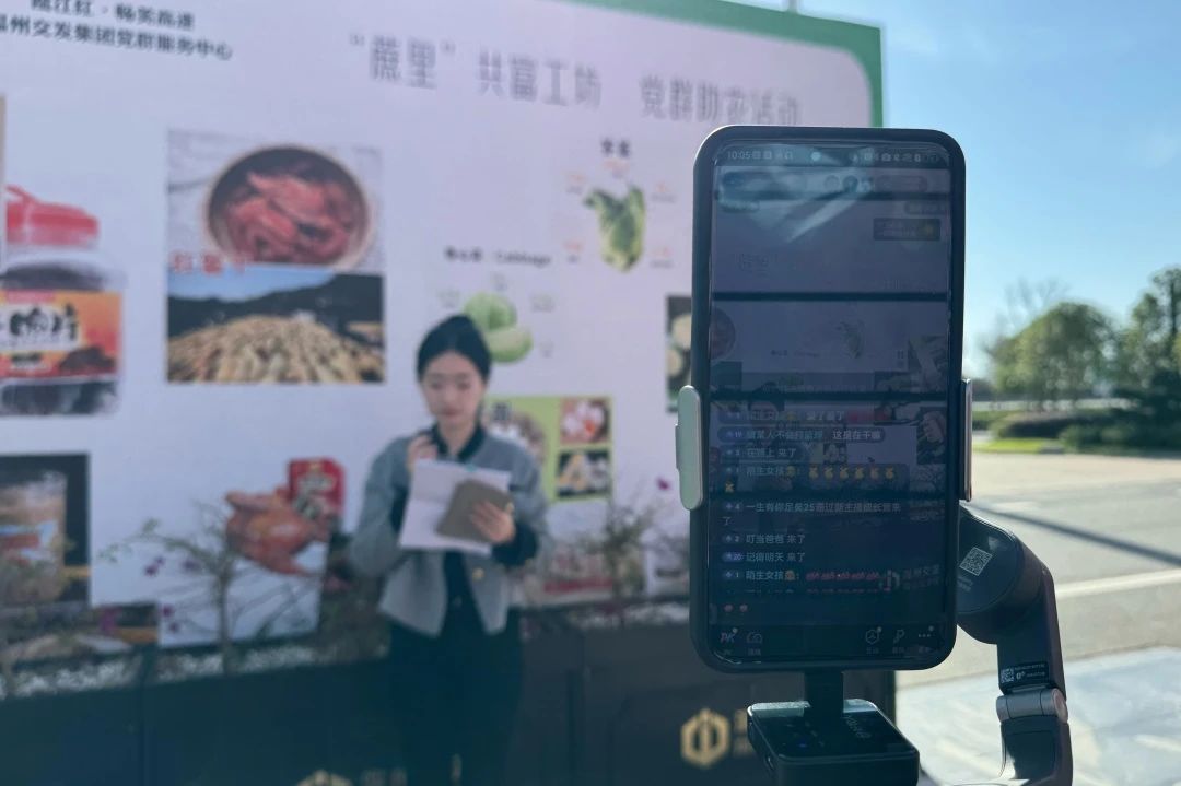 活动现场,陶山甘蔗、红糖、湖岭牛肉等当地特色农产品琳琅满目,司乘人员可以现场直接购买农特产品,也可通过线上扫码关注普惠助农馆小程序进行选购。青年员工还通过现场直播的形式,邀请农户对农特产品进行讲解。这一系列举措为农户们提供了一个直接面对消费者的销售平台,进一步拓宽了陶山农产品的销售渠道,为乡村振兴注入更多创新活力。