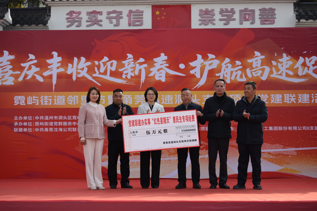 近日,由甬莞沈海联合党支部组织的“喜庆丰收迎新春·护航高速促共富”党建联建活动在洞头区霓屿街道正岙共富广场顺利举行。本次活动联合项目沿线街道、村社党组织,以党建为纽带深化路地融合,助力乡村振兴,彰显国企担当。