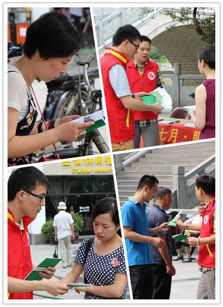 7月19日、20日,市交投集团团委志愿者利用周末空闲时间在南塘步行街和白鹿洲公园等地开展“红七月·服务月”暨社会公益宣传活动。