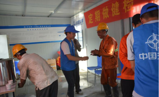 此次活动高投青年志愿者们分别走访了甬台温复线南塘至黄华段1-4标,在各标段管理人员的配合下,于施工现场多点设伏茶供应区及移动伏茶点,同时,根据工人分布情况,向每个施工组分发伏茶包。