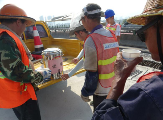 通过此次活动的成功开展,让现场一线工人在炎炎夏日也能感受到来自高投公司的关怀,真正做到工程管理人员和施工建设人员分工不分家。此次“送伏茶,进标段”活动在各标设立伏茶供应点,供工地施工人员解暑,计划连续开展一个月,视天气情况再做补给。