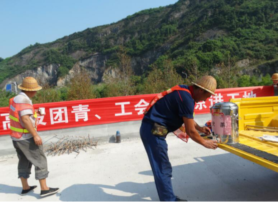 烈日炎炎,正值炎热酷暑,现场一线施工工人顶着酷暑仍然坚守在施工一线,他们身上的工作服总是湿了又湿。为了让一线施工匠人们在炎炎夏日里,也能感受到一丝凉爽。8月中旬,交投集团团委高投支部青年联合工会送伏茶进工地,为炎炎烈日下的一线工人送上阵阵清凉。