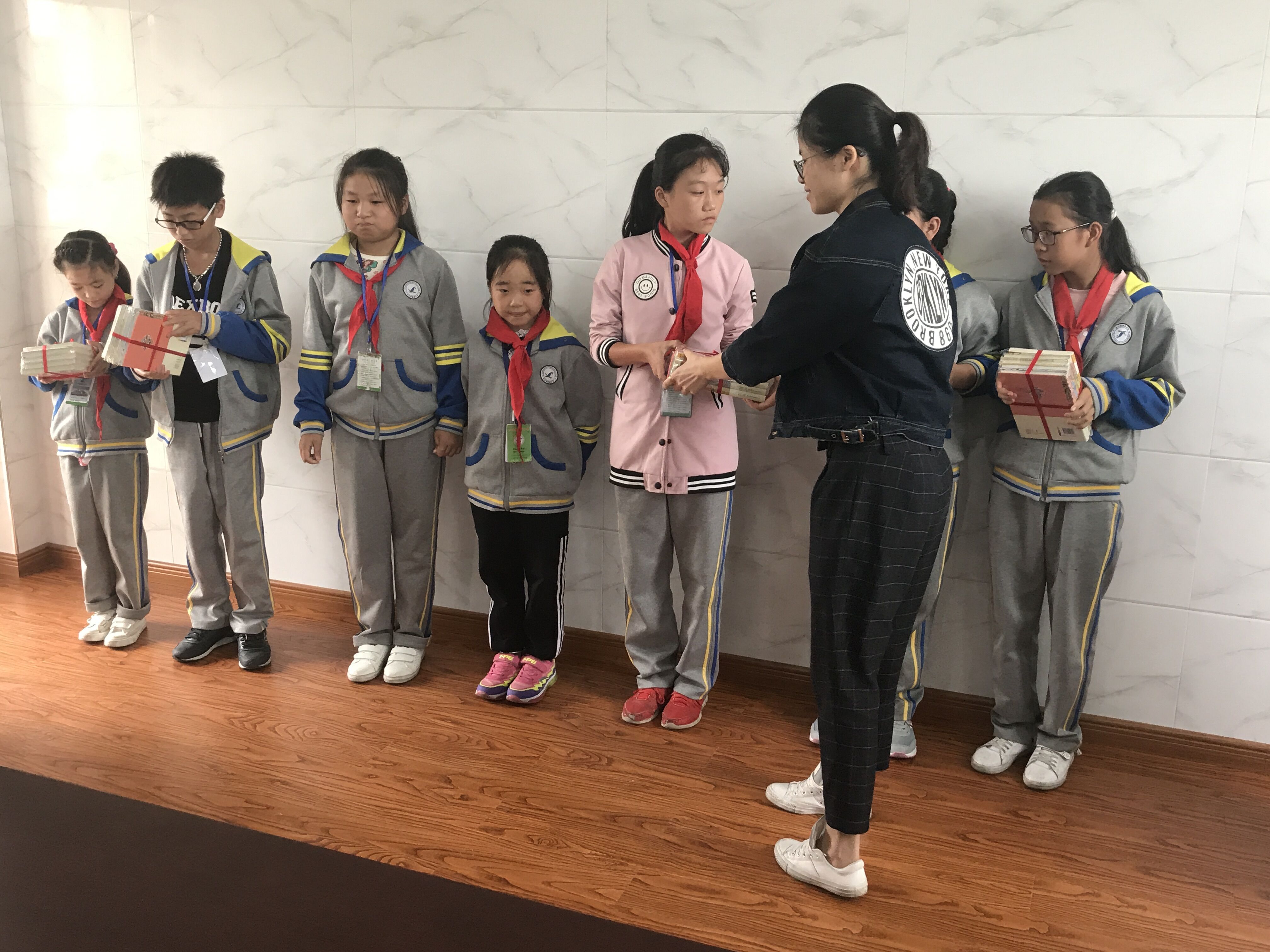 集团团委代表与金乡四小、大渔小学的多名学生进行了深入的沟通,对孩子们的近况进行了解,询问了他们生活之所需、学业之所困、心理之所愿、理想之所在。他们当中的好几位已从小学升至初中,部分学生家庭贫困情况仍然十分棘手。比如来自大渔镇学校的陈立柱,父亲已逝,母亲常年眼病无法治愈,家里唯一的劳动力是一个双腿患疾的爷爷,平时做点农活维持家用。年幼的孩子并不知道家庭的贫困情况对他意味着什么,他们天真的眼神让我们这些“大哥哥大姐姐”更多了一份怜爱和辛酸。