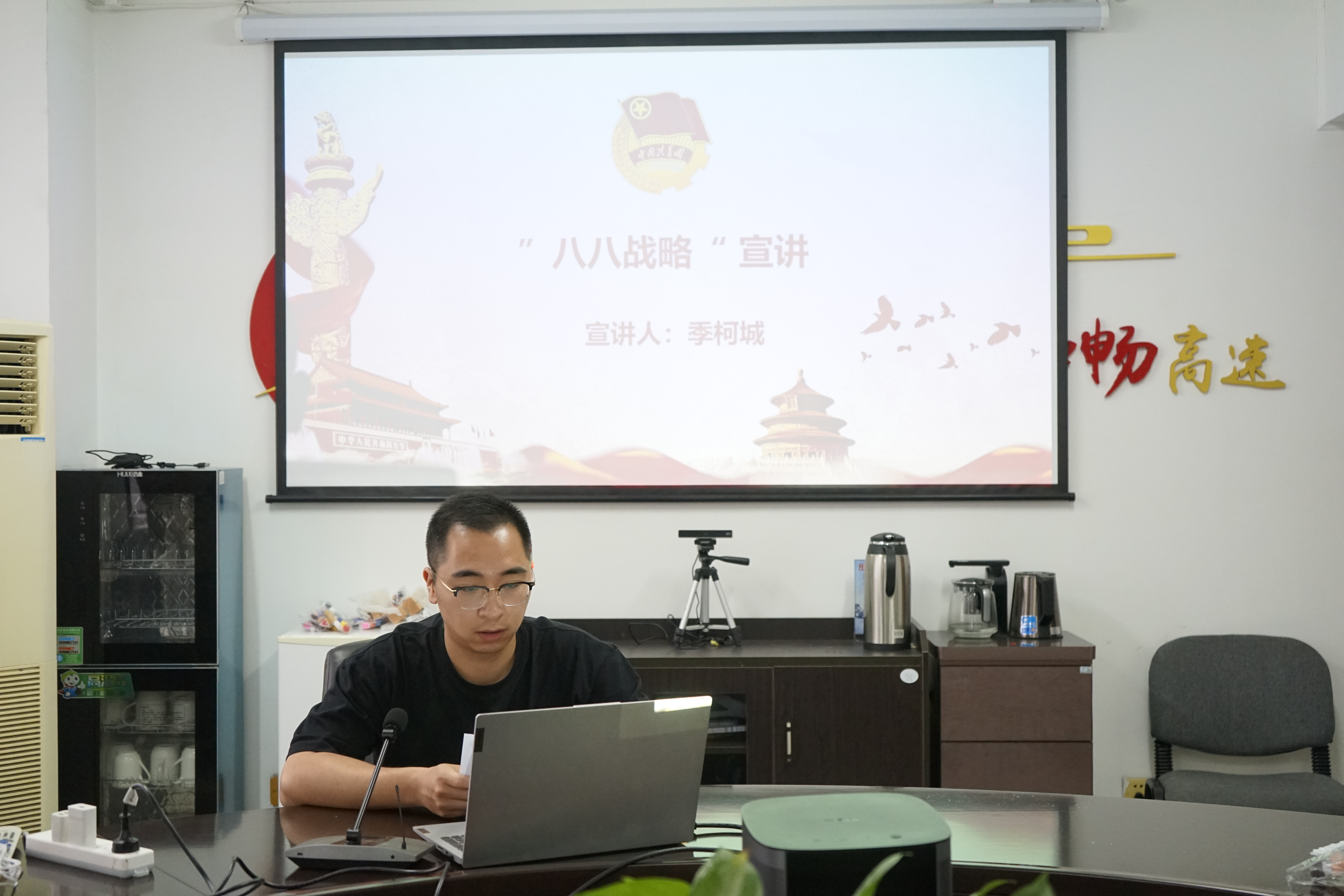运营公司团总支书记邵丽聪及瓯江口团支部书记季柯城以互访交流的形式开展“八八战略”在身边“走亲”宣讲活动。两位宣讲员从“八八战略”的重要意义、核心内容、战略举措等方面,紧扣习近平总书记关于温州工作的重要批示指示精神,结合“八八战略”在高速公路运营和交通工程领域的生动实践,推动“八八战略”入耳入脑入心,激励广大团员青年忠实践行“八八战略”,为奋力续写创新史、走好共富路、争创先行市贡献365在线体育投注官网青春力量。随后,团员青年们结合工作实际畅谈对“八八战略”的所想所悟。